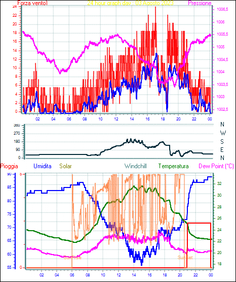 Maximum dewpoint = 23.9°C giorno 03 tempo 17:14