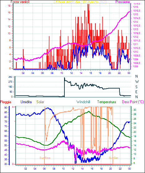 Velocità massima di raffica = 24.1 km/h da 159°(SSE) giorno 03 tempo 17:06