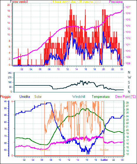 Pressione massima = 1016.5 hPa giorno 31 tempo 23:56