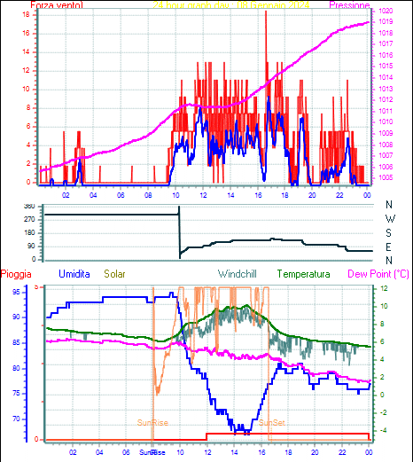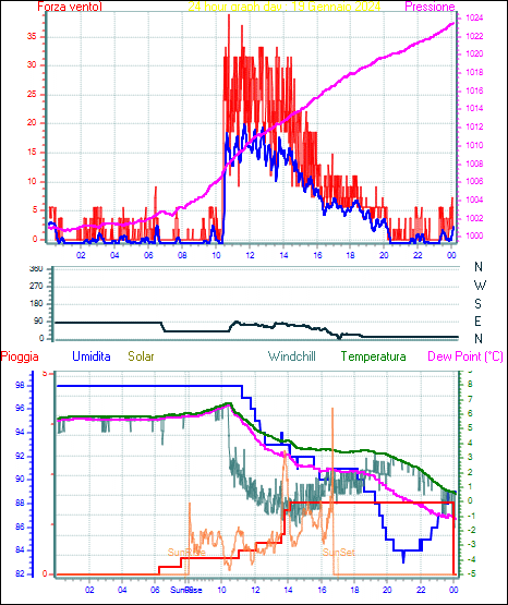 Il massimo windspeed = 24.1 kmh from 103°(ESE) giorno 19 tempo 11:36