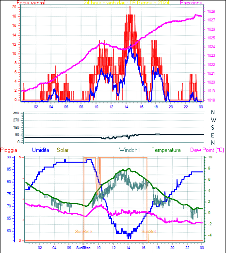 Minimum dewpoint = -2.4°C giorno 31 tempo 8:13