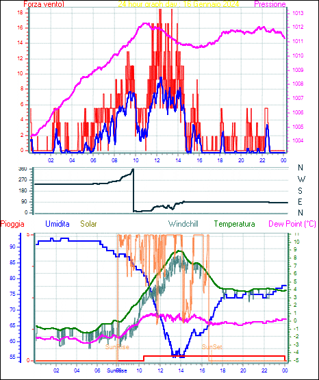 Velocità massima di raffica = 16.7 km/h da 261°( W ) giorno 01 tempo 01:06