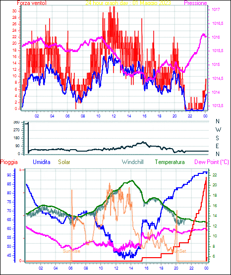 Pressione massima = 1016.1 hPa giorno 01 tempo 23:57