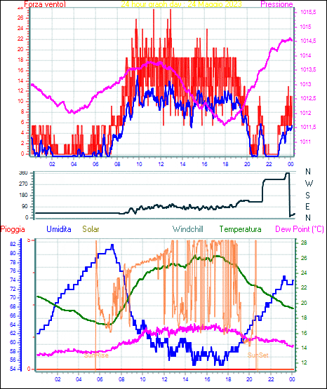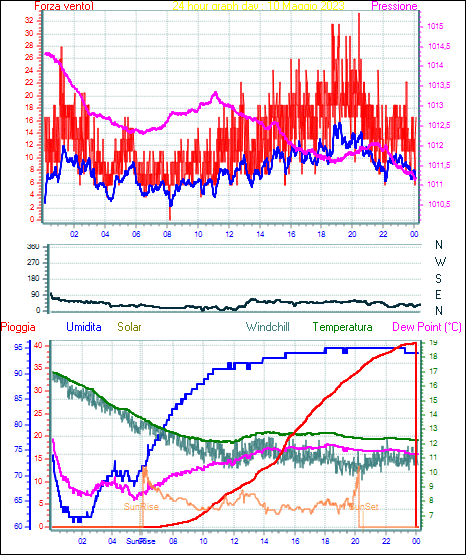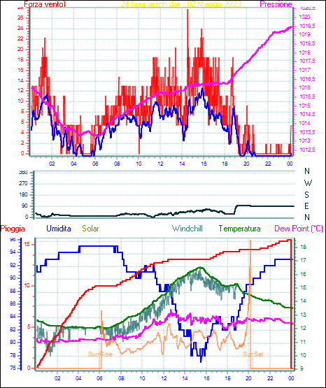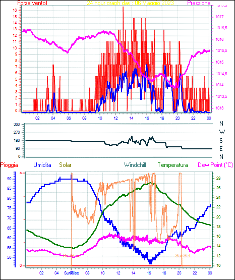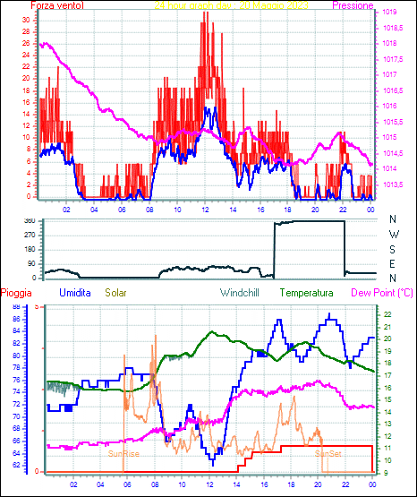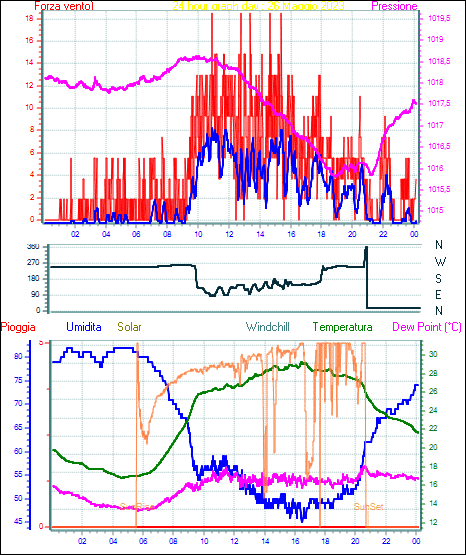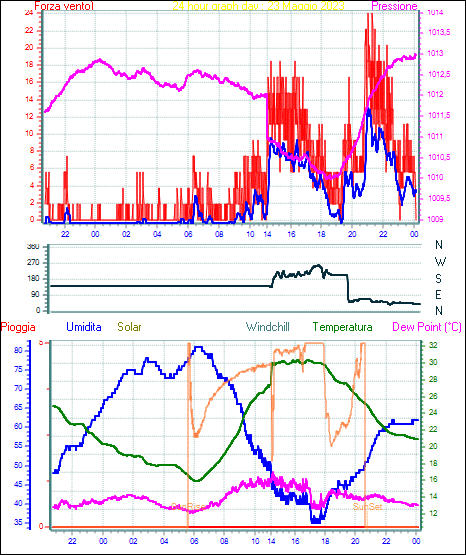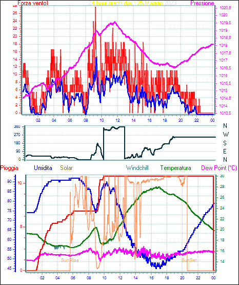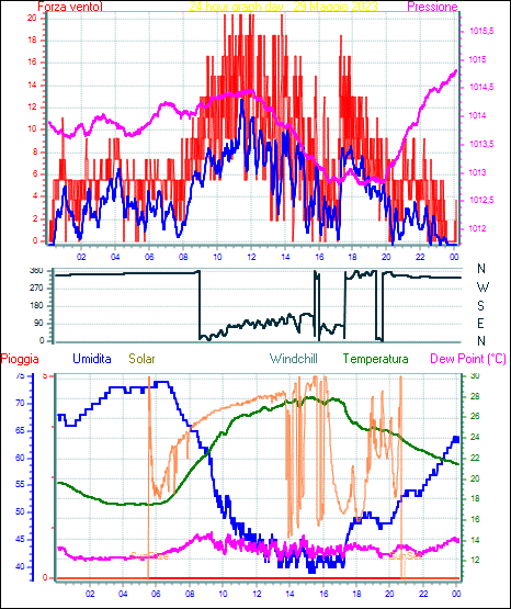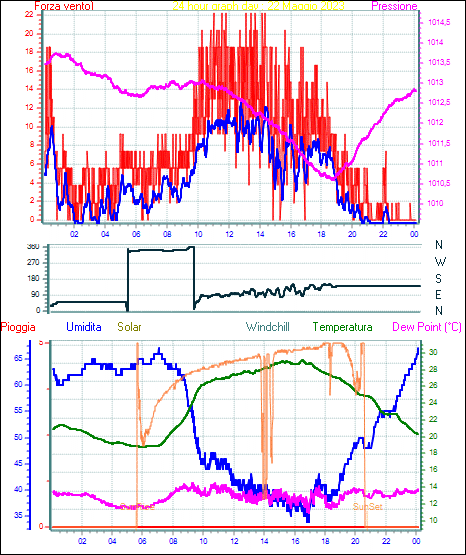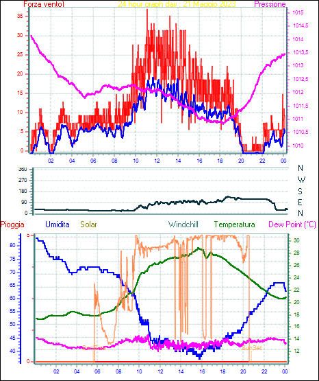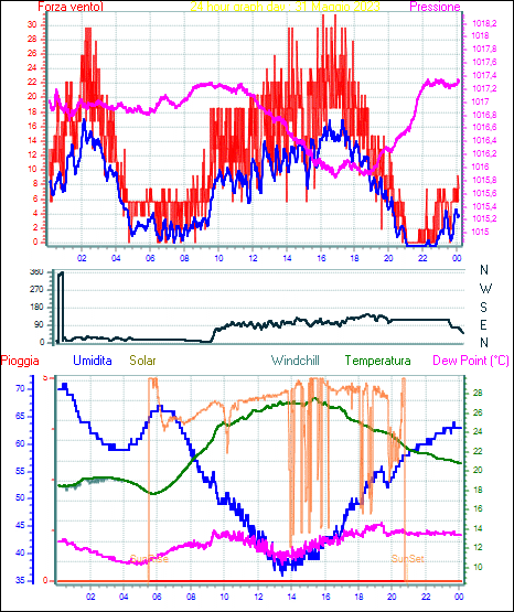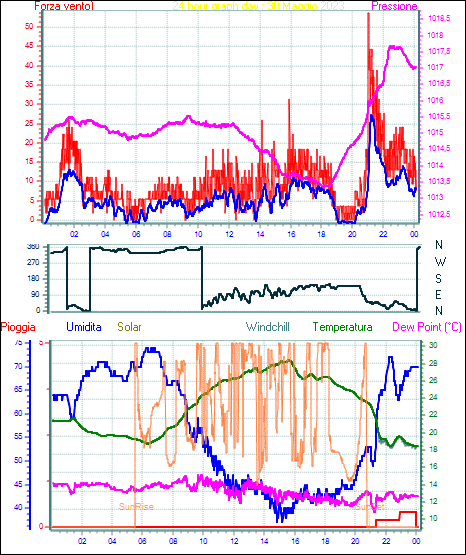 Il massimo windspeed = 31.5 kmh from 025°(NNE) giorno 30 tempo 21:19
