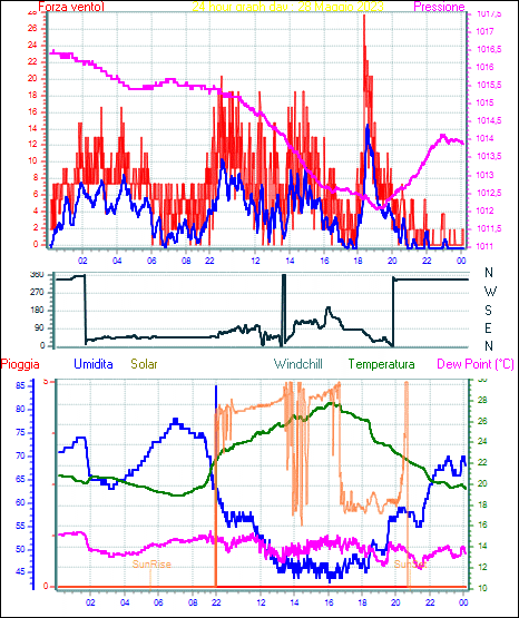 Velocità massima di raffica = 27.8 km/h da 051°( NE) giorno 02 tempo 14:35