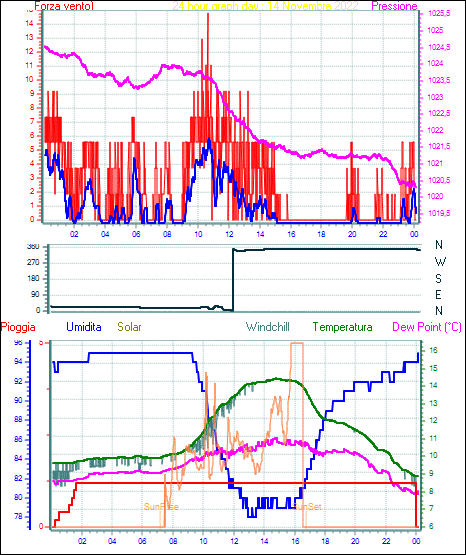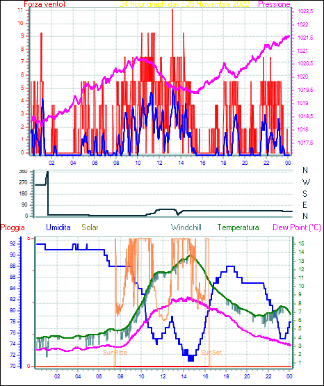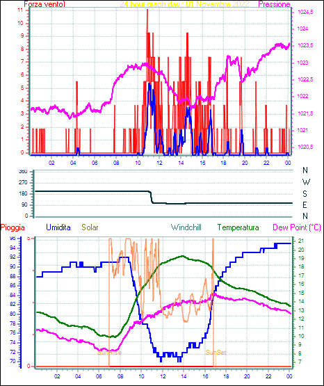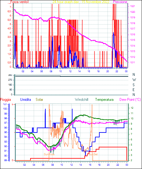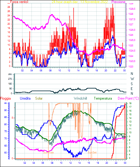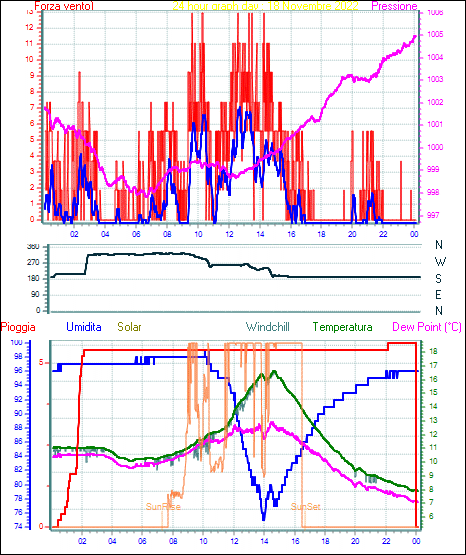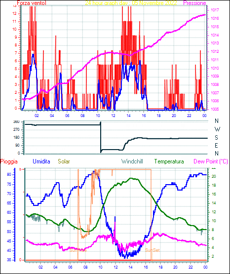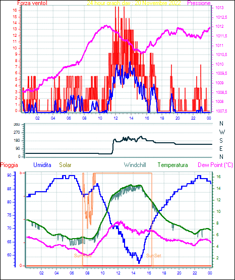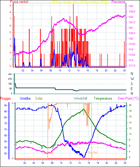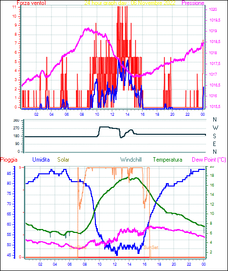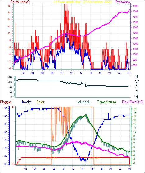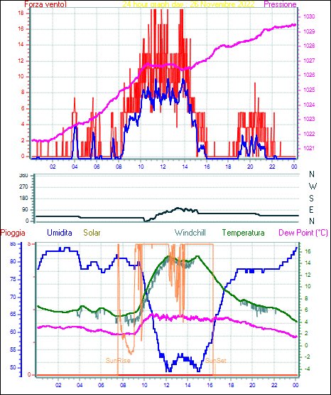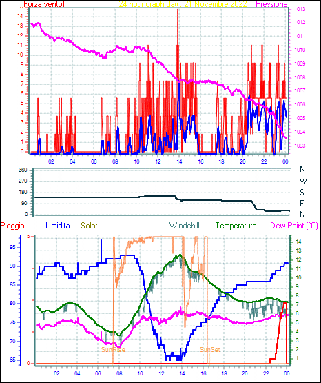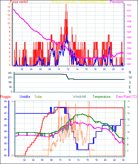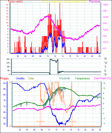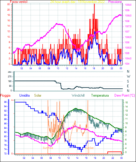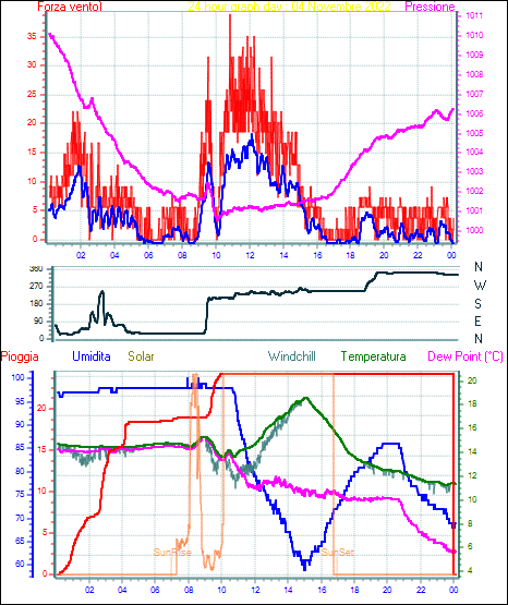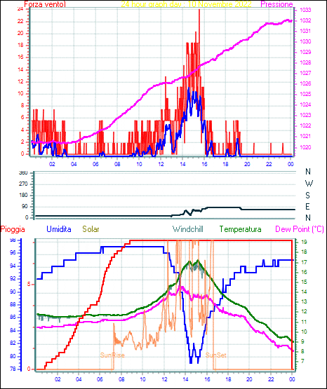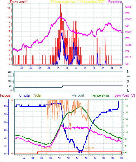 Il massimo windspeed = 31.5 kmh from 053°( NE) giorno 22 tempo 11:39