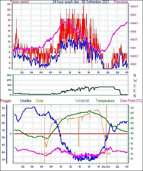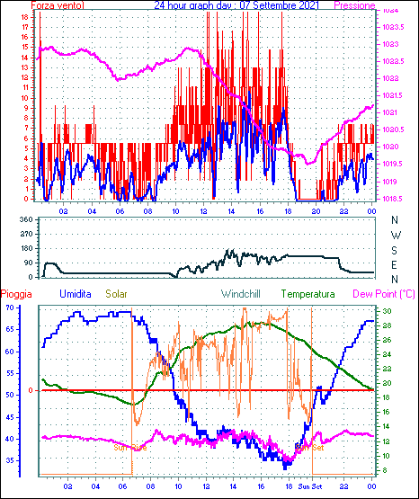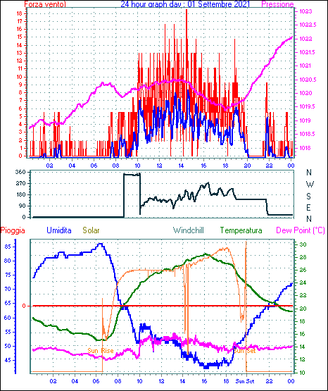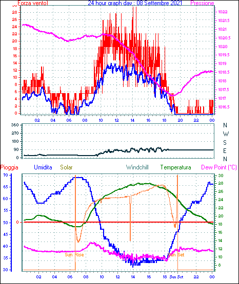 Il massimo windspeed = 18.5 kmh from 045°( NE) giorno 30 tempo 12:32