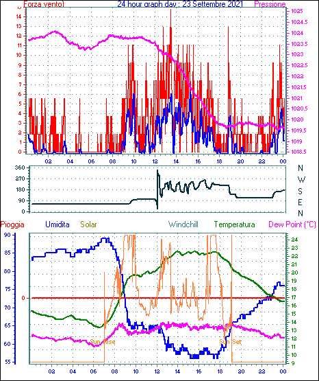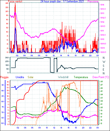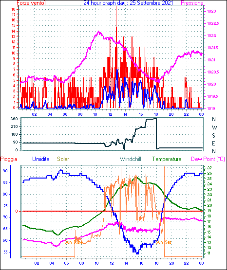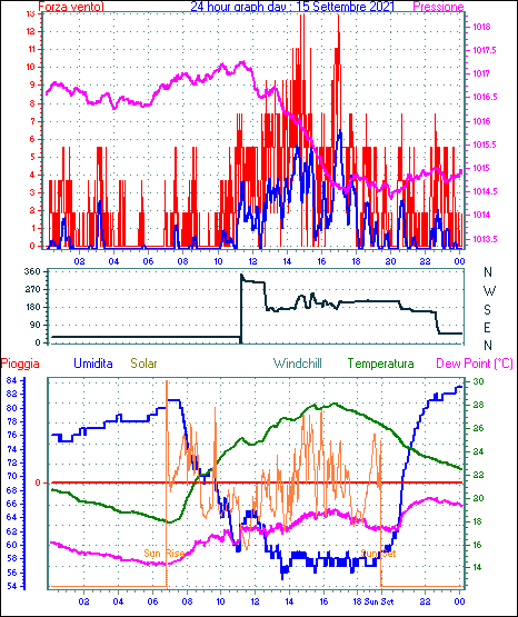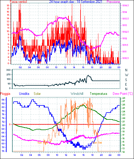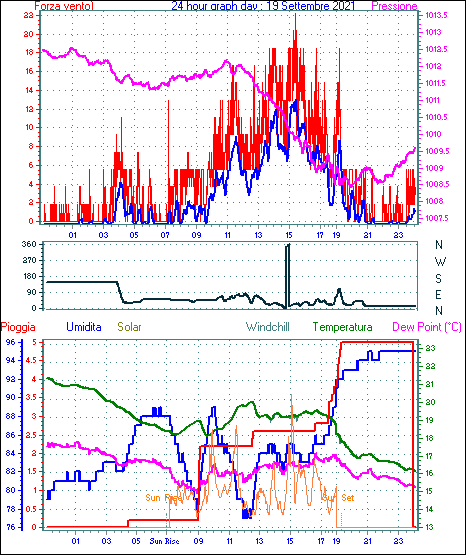 Velocità massima di raffica = 18.5 km/h da 158°(SSE) giorno 03 tempo 15:16
