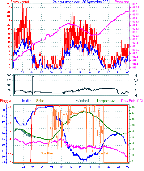 Barómetro maxima = 1026.0 hPa giorno 30 tempo 23:54