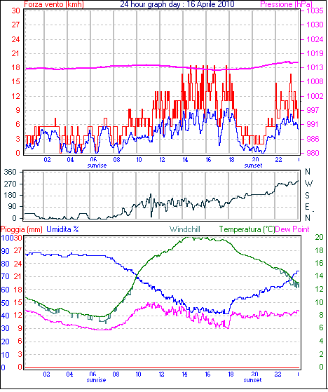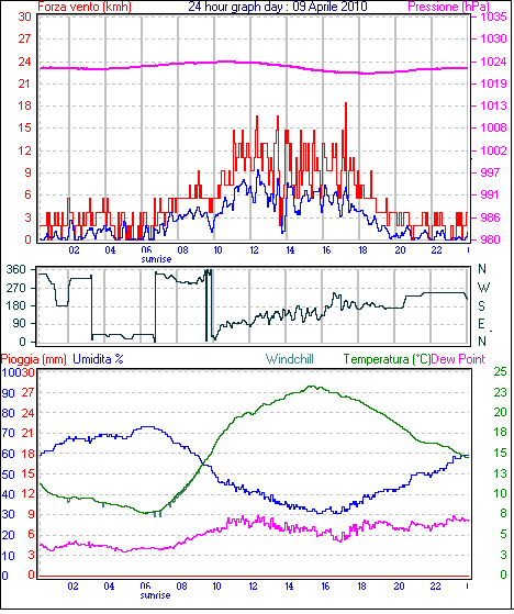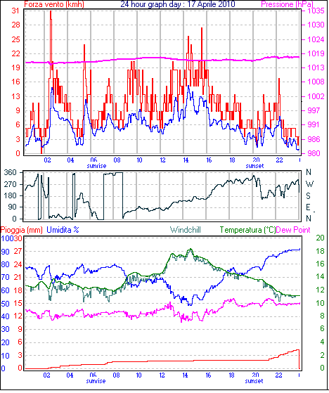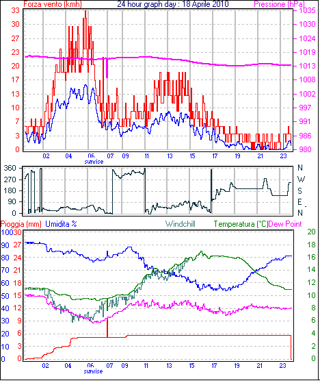 Velocità massima di raffica = 18.5 km/h da 135°( SE) giorno 03 tempo 19:10
