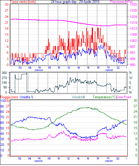Il massimo windspeed = 13.0 km/h giorno 29 tempo 18:39