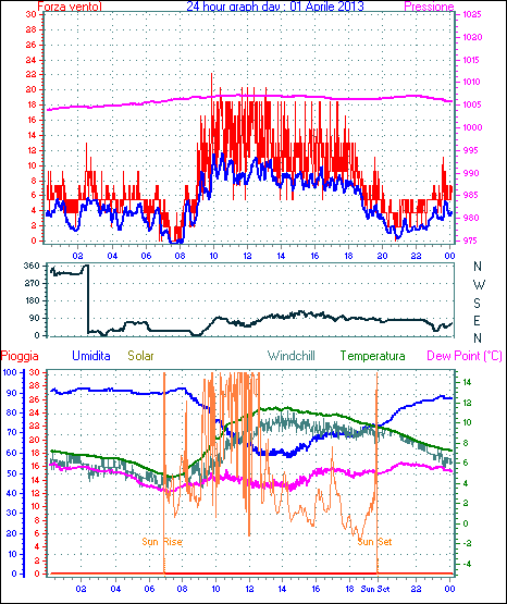 Velocità massima di raffica = 22.2 km/h da 090°( E ) giorno 01 tempo 09:52