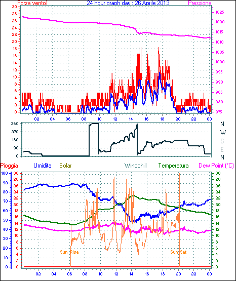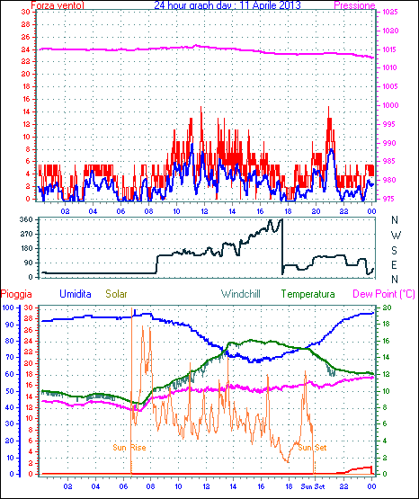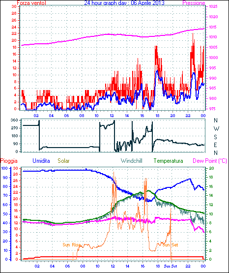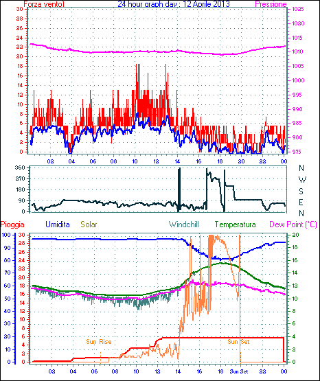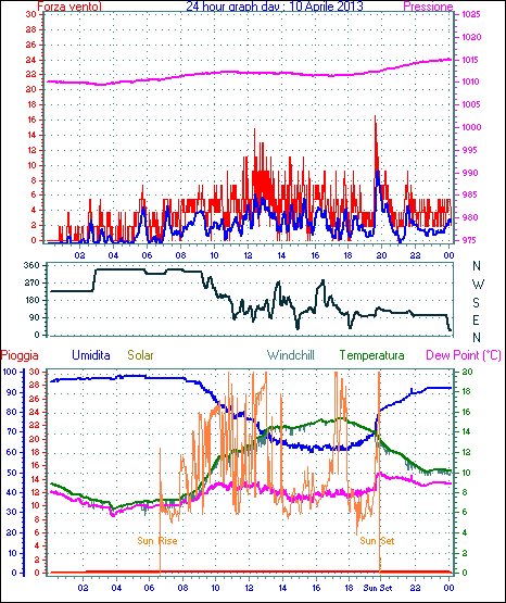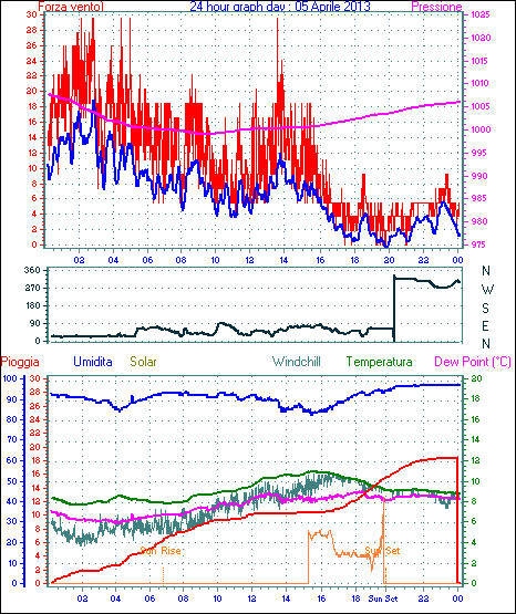 Velocità massima di raffica = 18.5 km/h da 023°(NNE) giorno 04 tempo 22:25