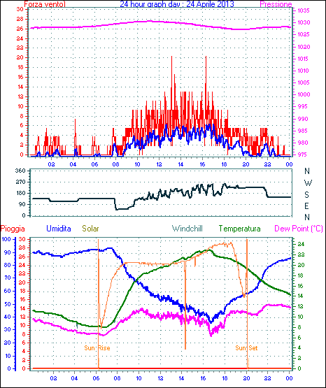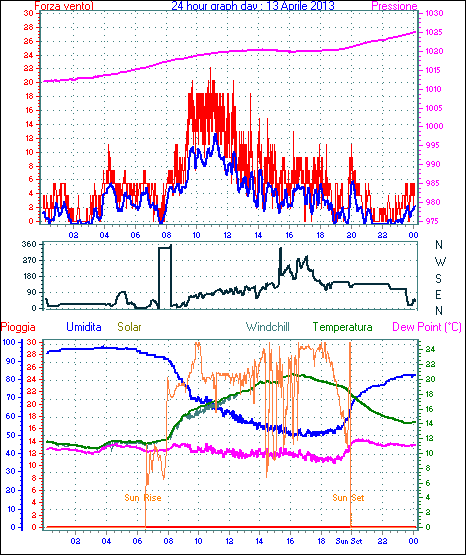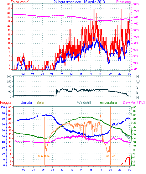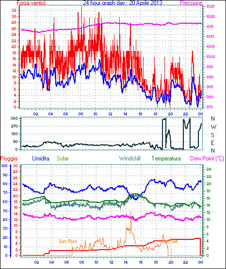 Il massimo windspeed = 20.4 kmh from 045°( NE) giorno 20 tempo 10:31