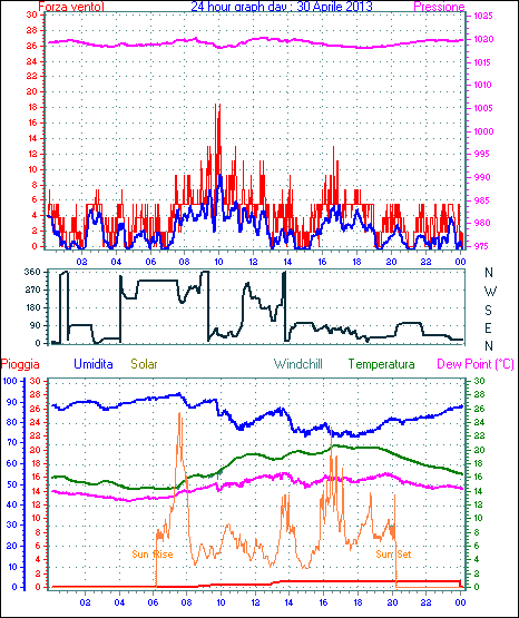 Velocità massima di raffica = 18.5 km/h da 023°(NNE) giorno 30 tempo 10:02
