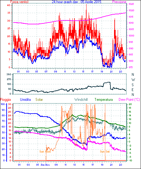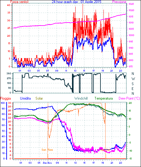 Velocità massima di raffica = 40.7 km/h da 315°( NW) giorno 01 tempo 14:37