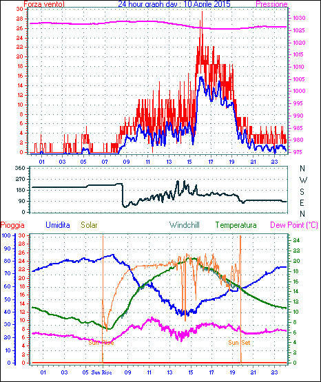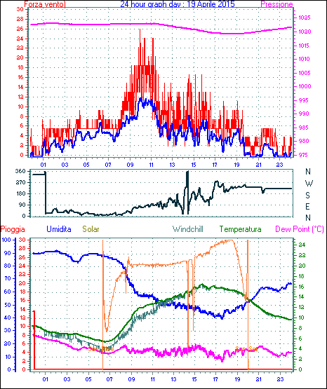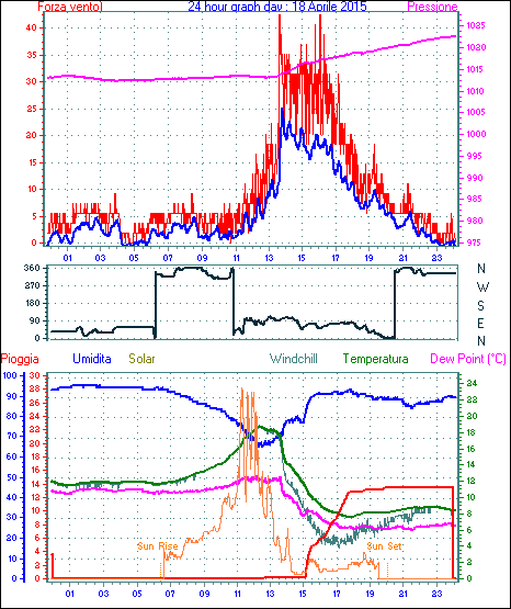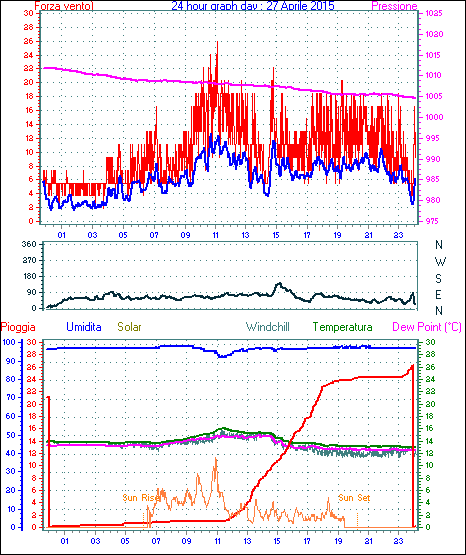 Il massimo windspeed = 27.8 kmh from 068°(ENE) giorno 18 tempo 14:55