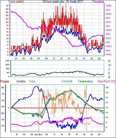Velocità massima di raffica = 31.5 km/h da 090°( E ) giorno 01 tempo 14:11
