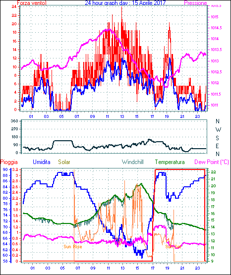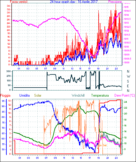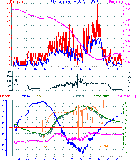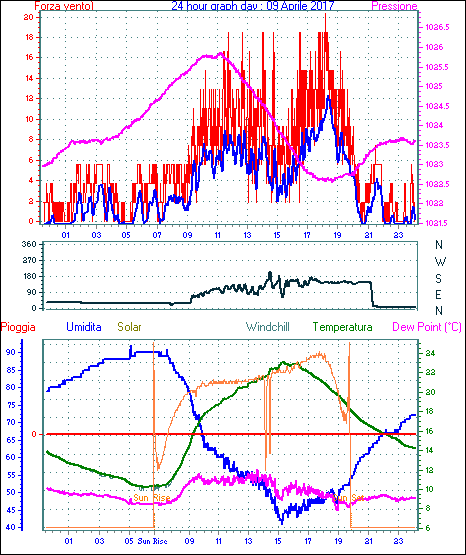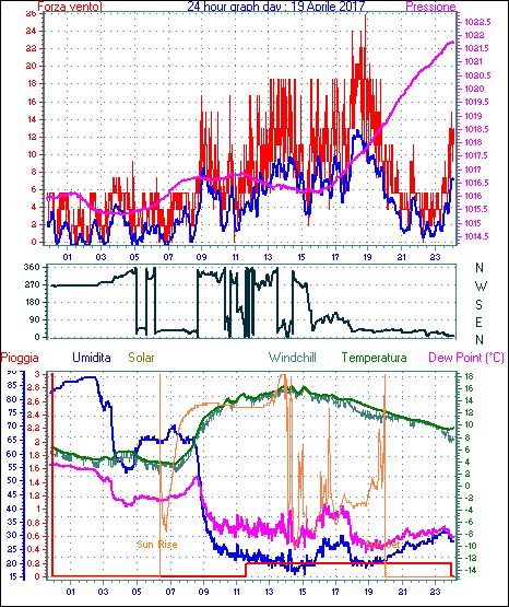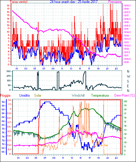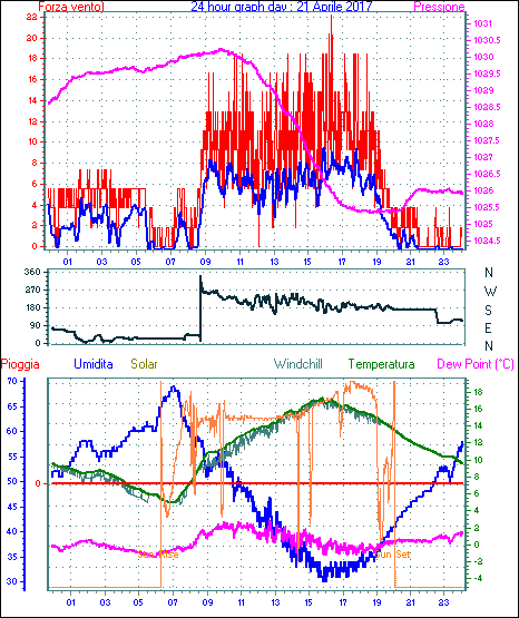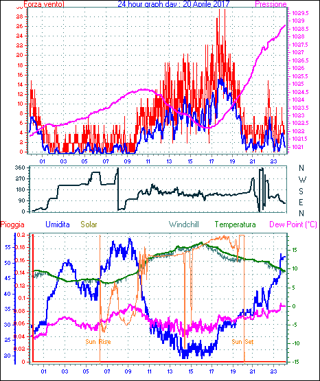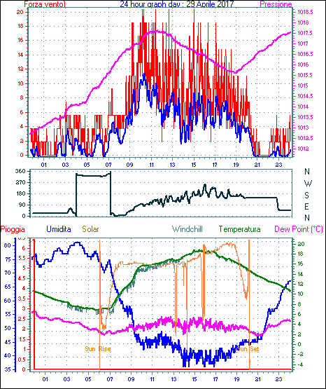 Velocità massima di raffica = 29.6 km/h da 315°( NW) giorno 04 tempo 15:45
