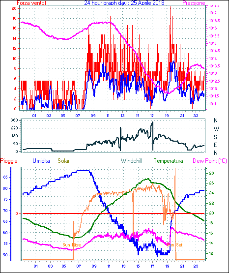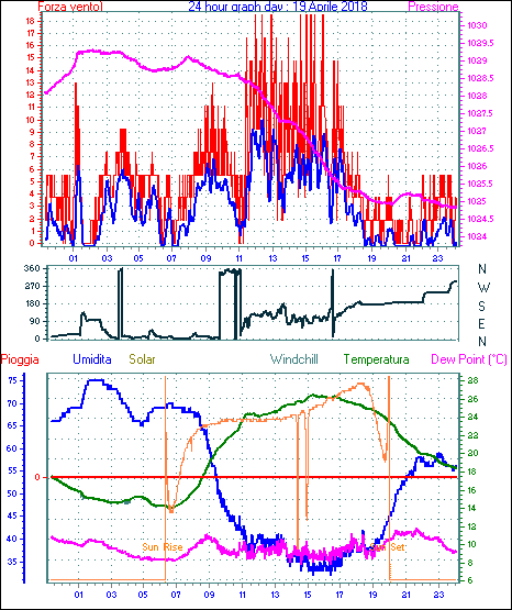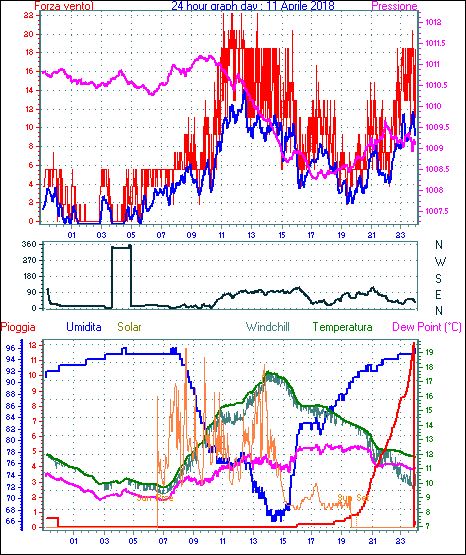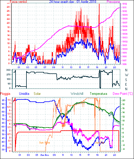 Il massimo windspeed = 18.5 km/h giorno 01 tempo 19:30