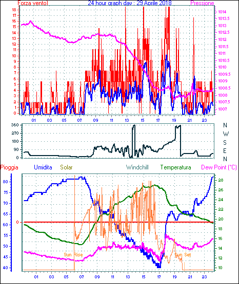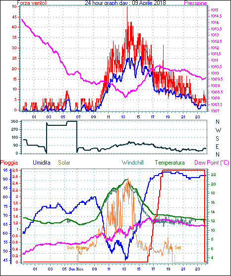Il massimo windspeed = 29.6 kmh from 090°( E ) giorno 09 tempo 15:11