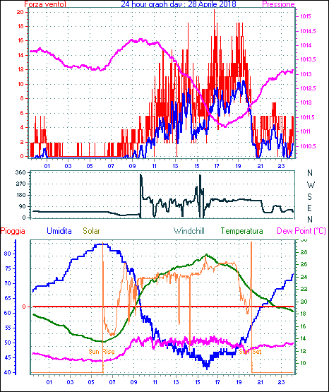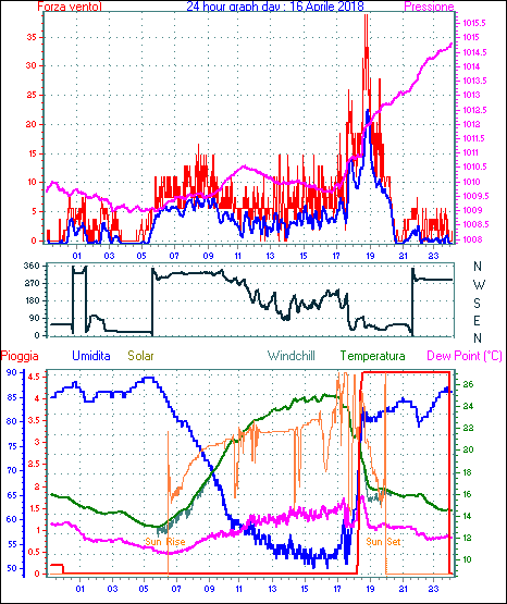 Velocità massima di raffica = 18.5 km/h da 135°( SE) giorno 02 tempo 17:51
