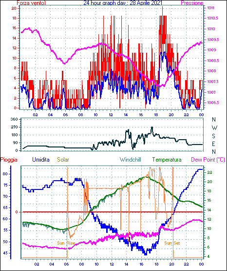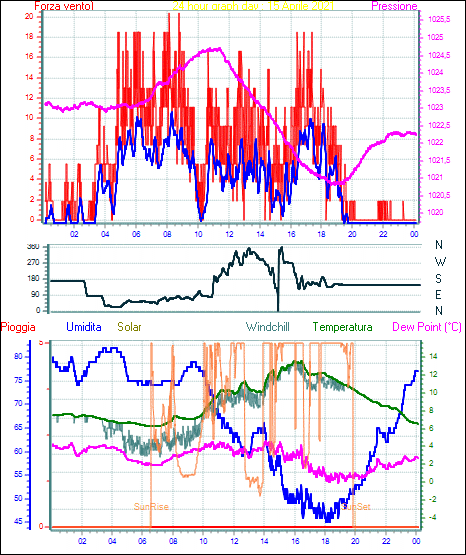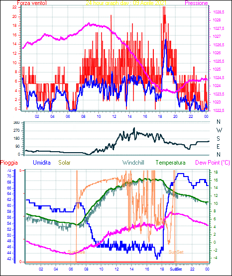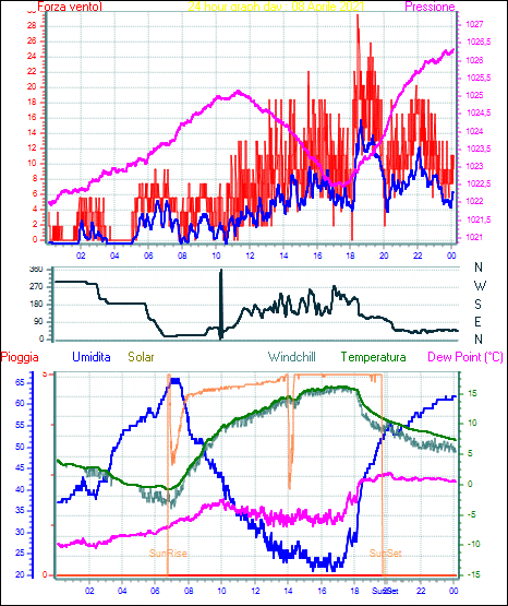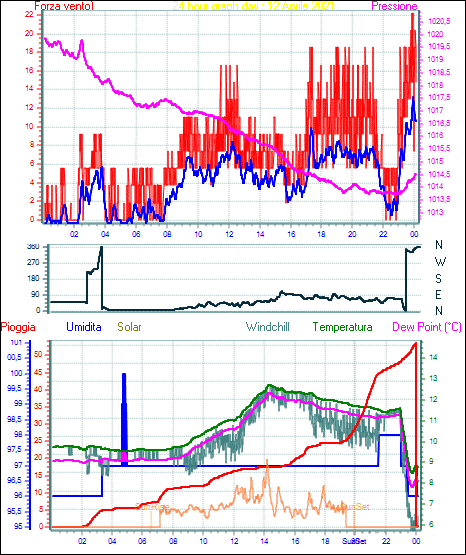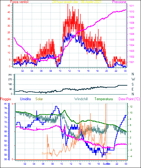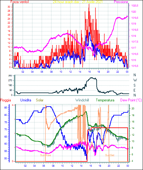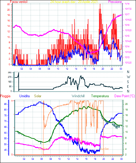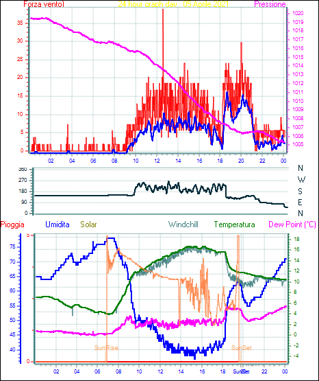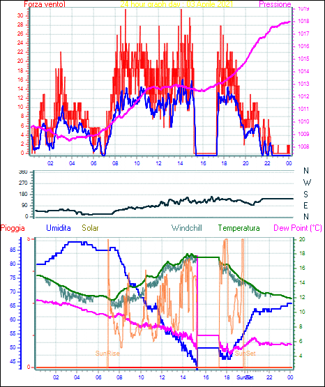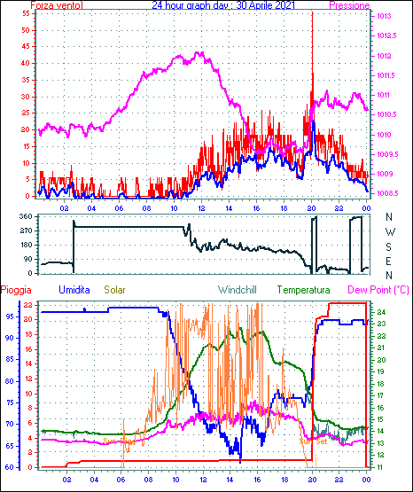 Il massimo windspeed = 35.2 kmh from 338°(NNW) giorno 30 tempo 20:05