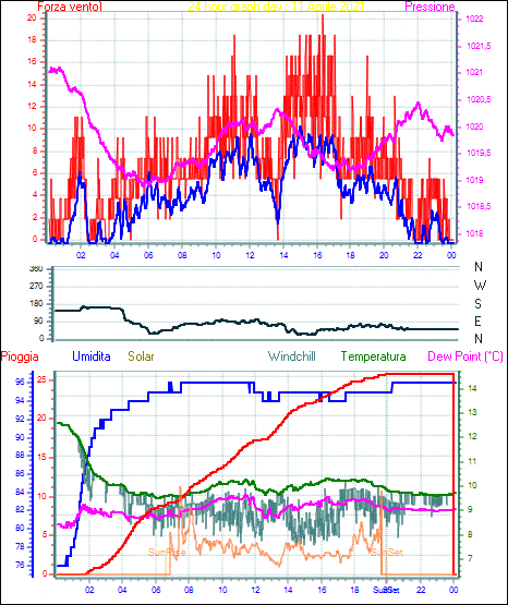 Maximum dewpoint = 14.0°C giorno 29 tempo 19:10
