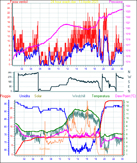 Maximum dewpoint = 13.4°C giorno 02 tempo 17:50
