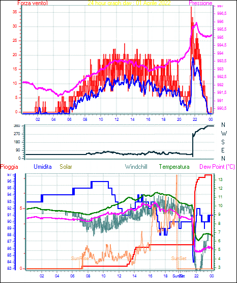 Pressione massima = 996.0 hPa giorno 01 tempo 22:10