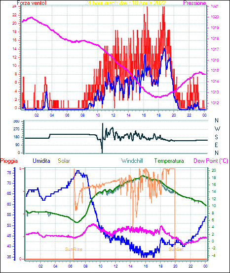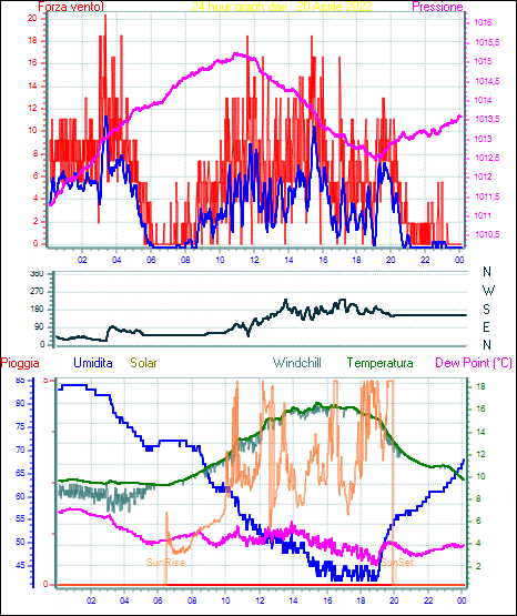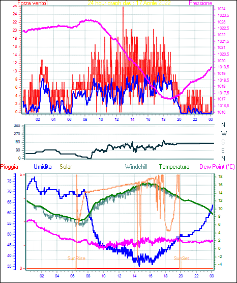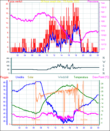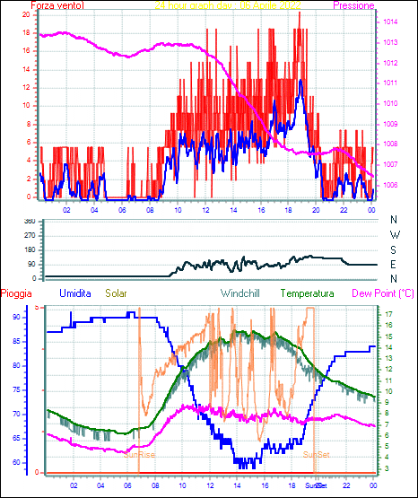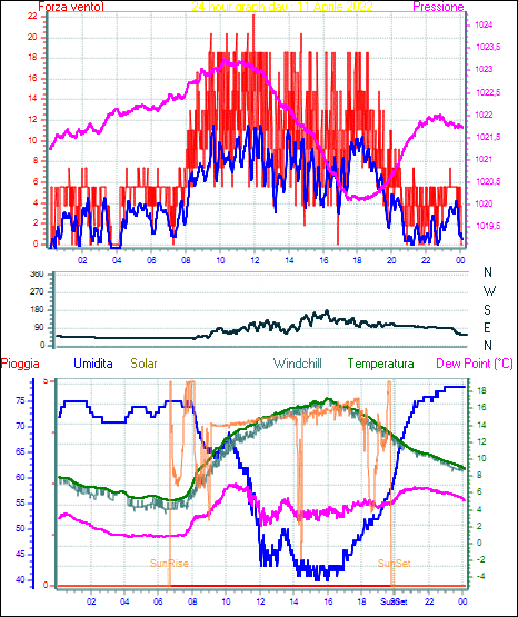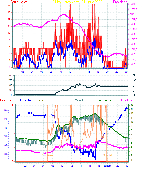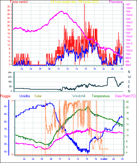 Velocità massima di raffica = 18.5 km/h da 159°(SSE) giorno 04 tempo 17:25