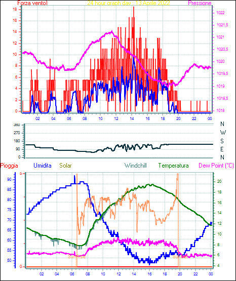 Il massimo windspeed = 13.0 km/h giorno 04 tempo 17:25
