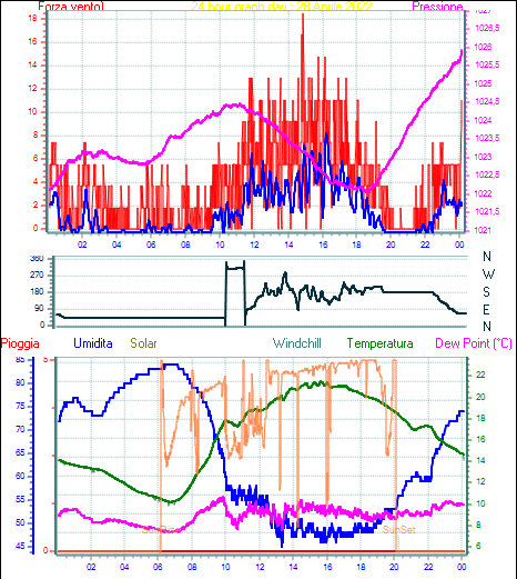 Il massimo windspeed = 24.1 km/h giorno 01 tempo 21:44