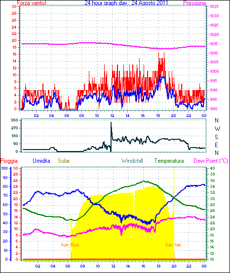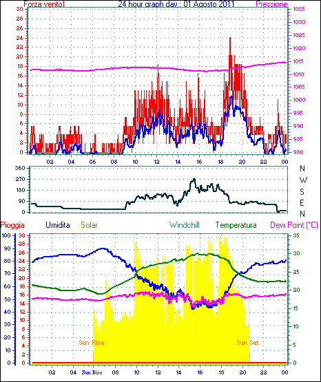Velocità massima di raffica = 24.1 km/h da 068°(ENE) giorno 01 tempo 18:53
