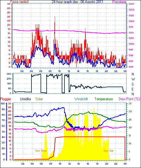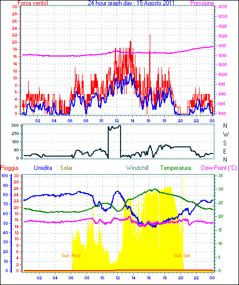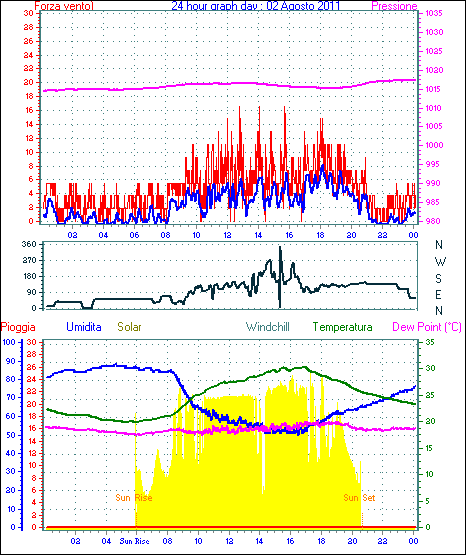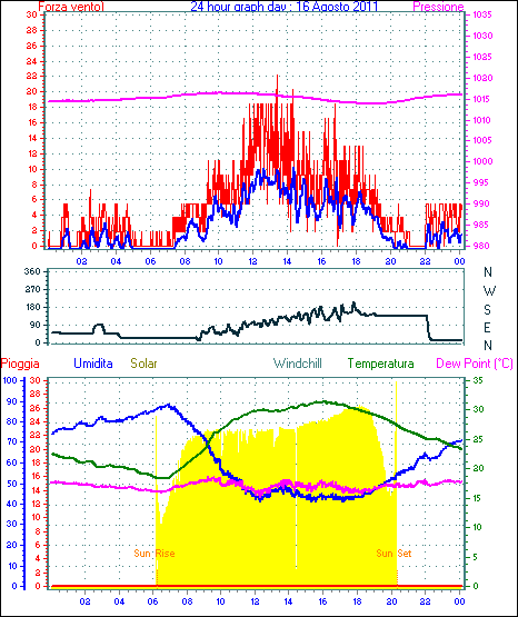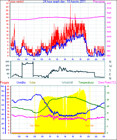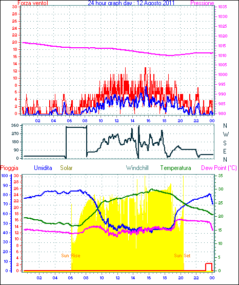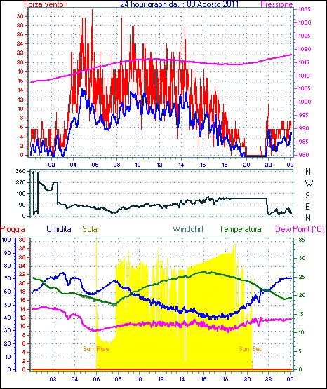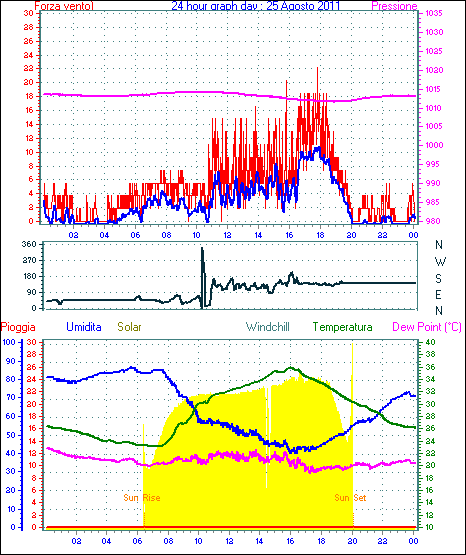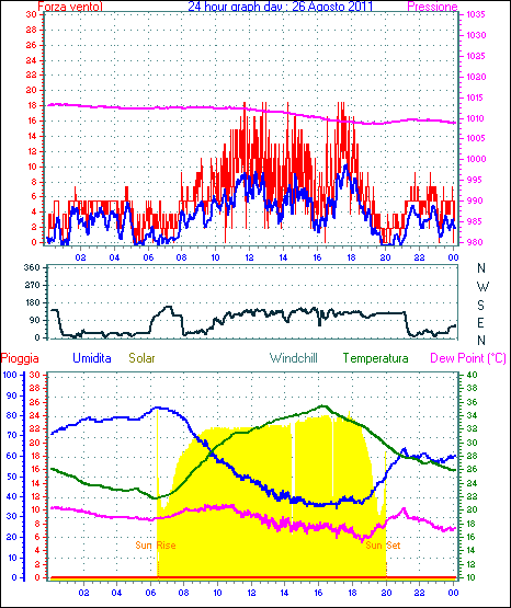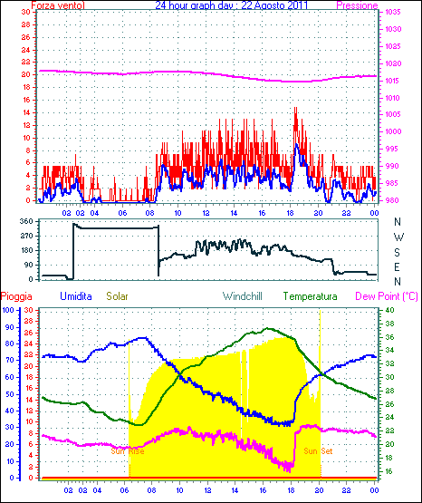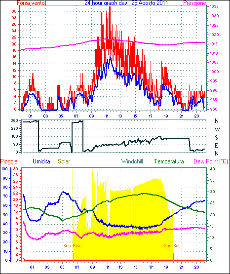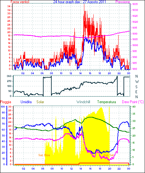Il massimo windspeed = 22.2 kmh from 248°(WSW) giorno 27 tempo 16:41
