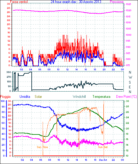 Velocità massima di raffica = 16.6 km/h da 135°( SE) giorno 30 tempo 14:15