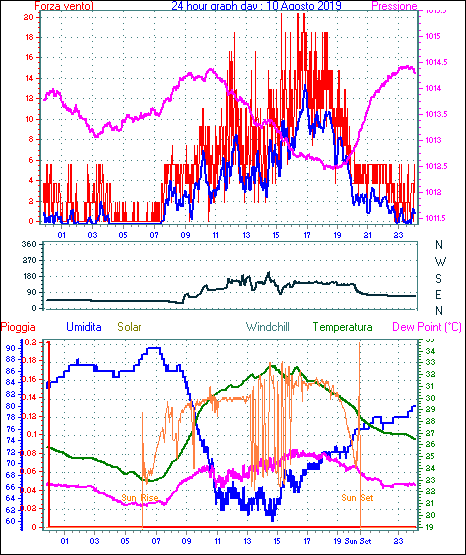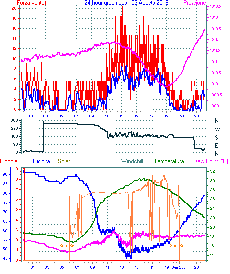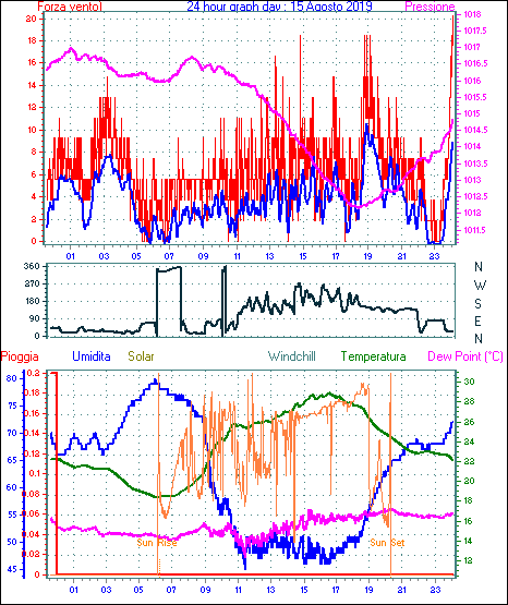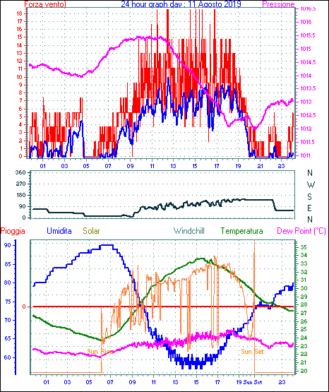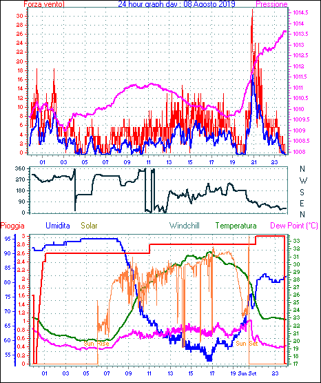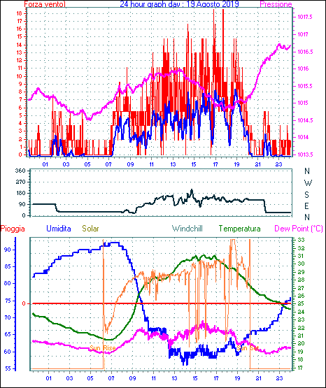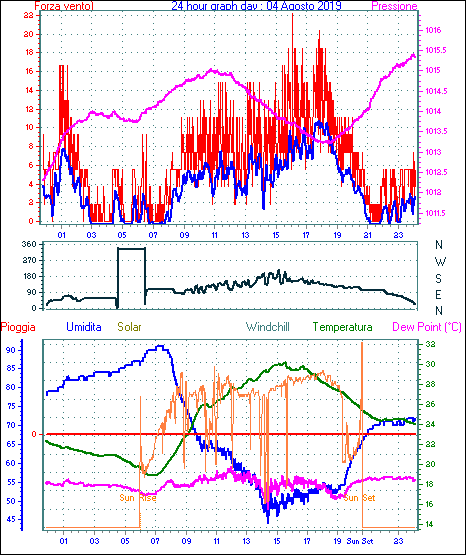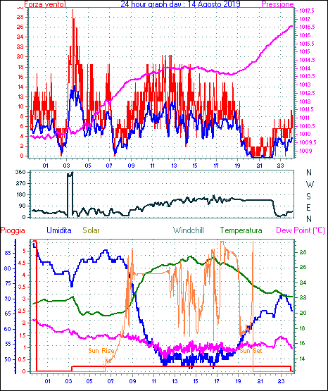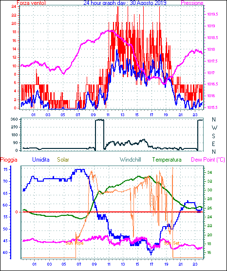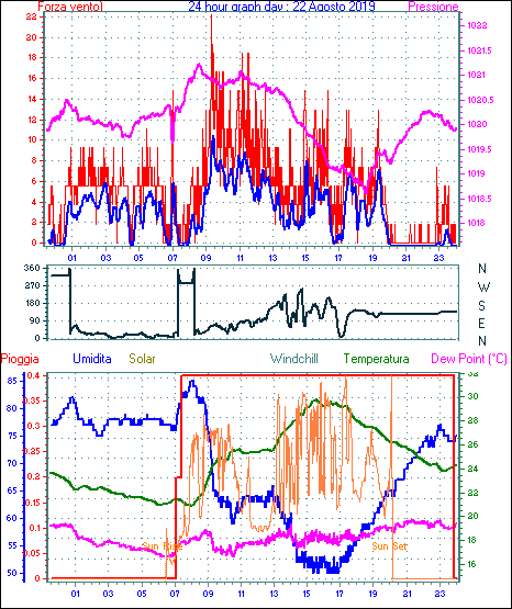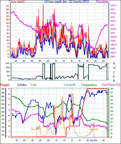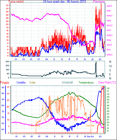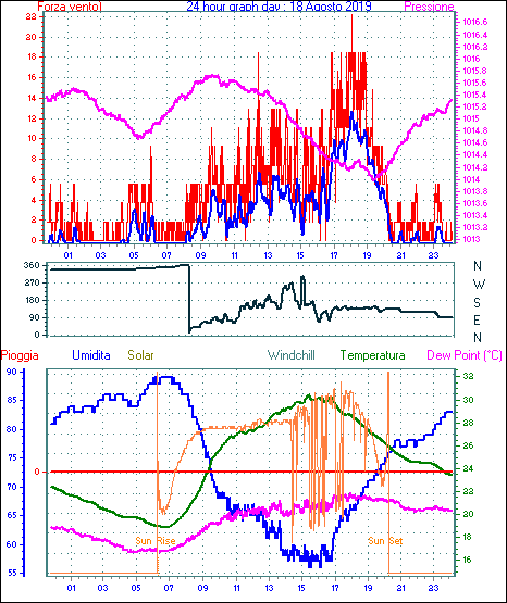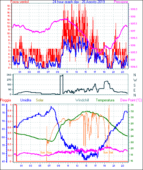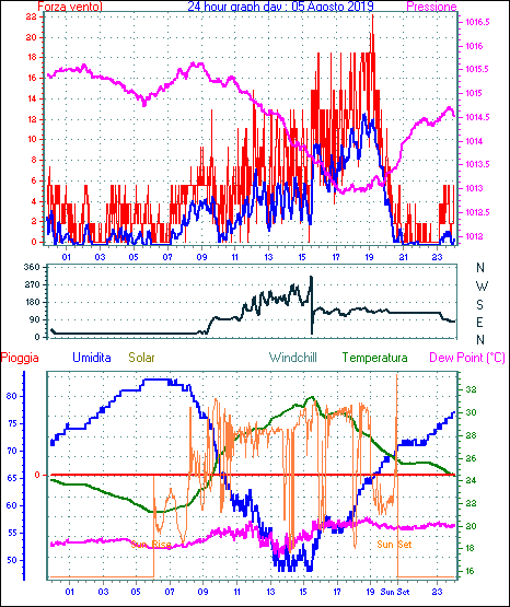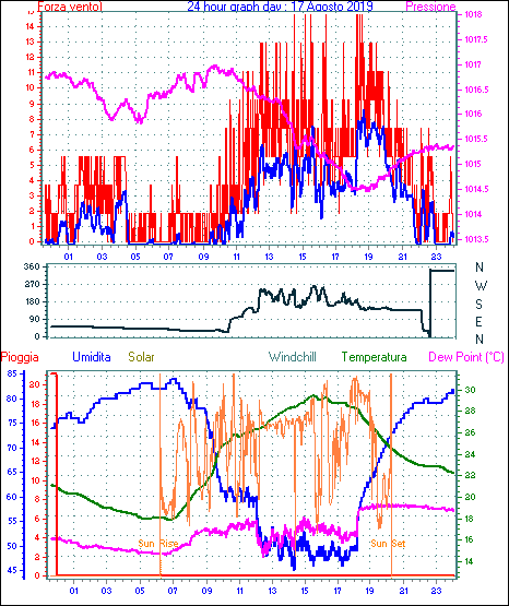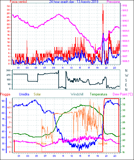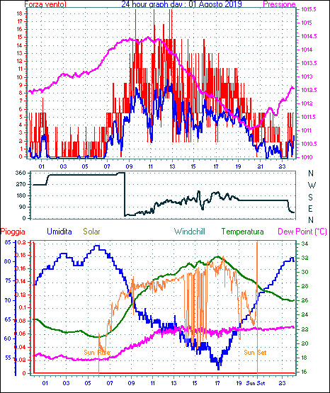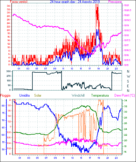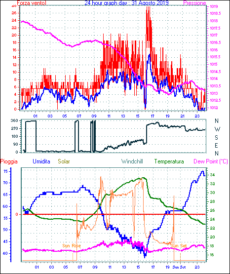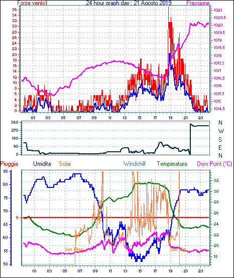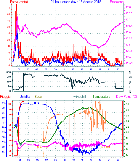 Il massimo windspeed = 31.5 kmh from 045°( NE) giorno 16 tempo 00:29