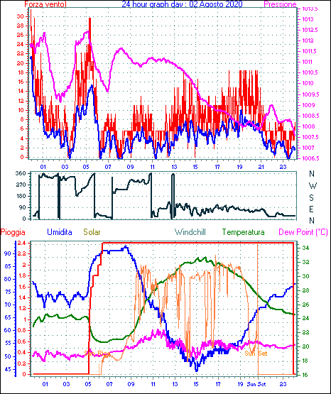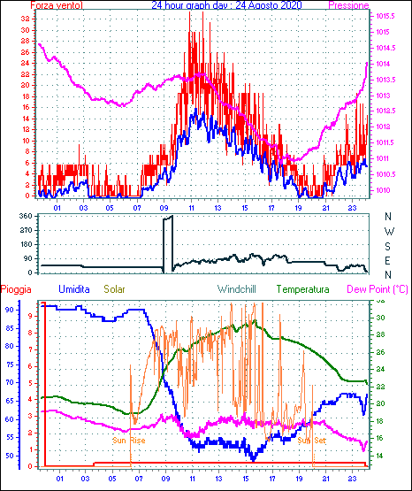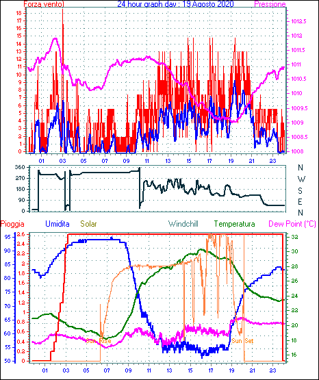 Il massimo windspeed = 31.5 km/h giorno 01 tempo 23:12