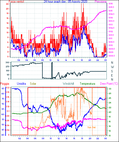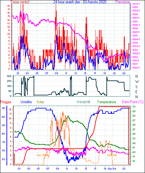 Velocità massima di raffica = 18.5 km/h da 023°(NNE) giorno 03 tempo 08:54