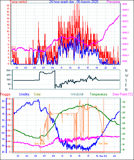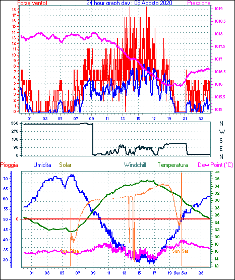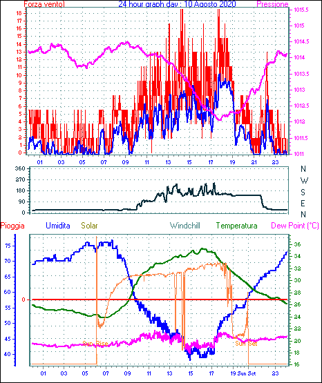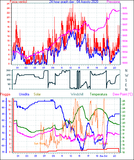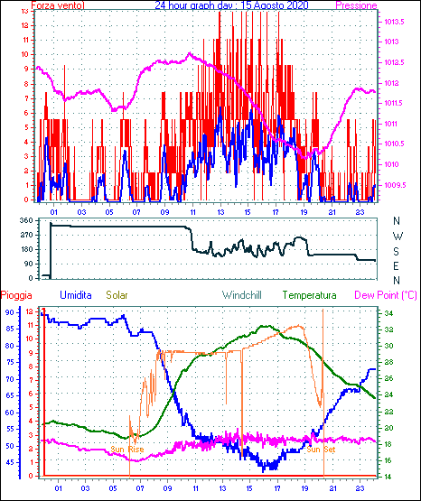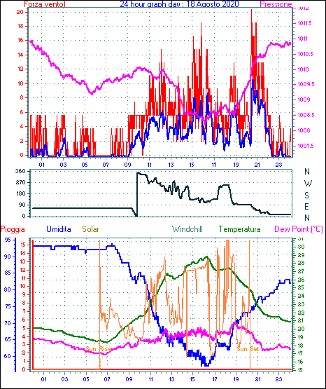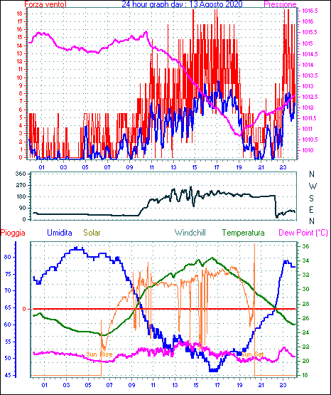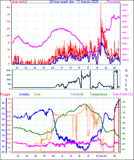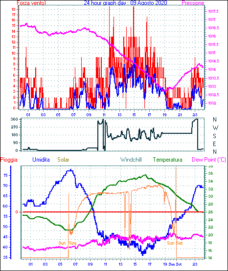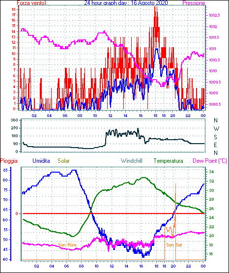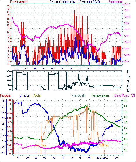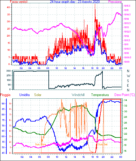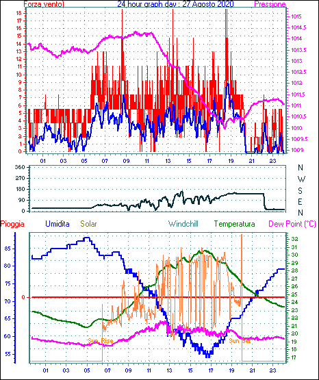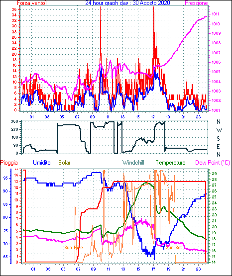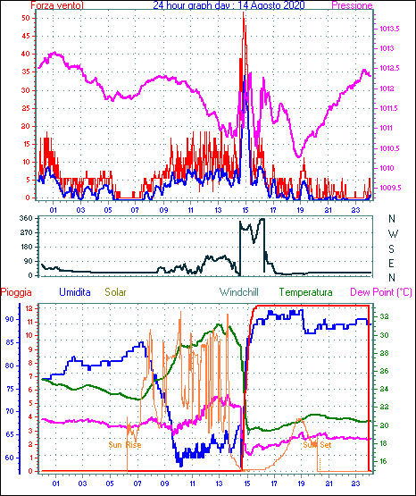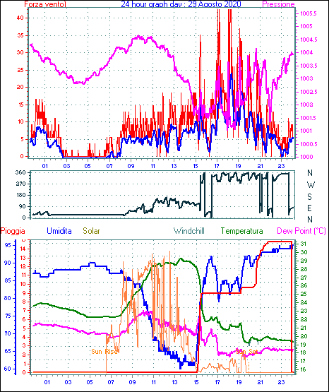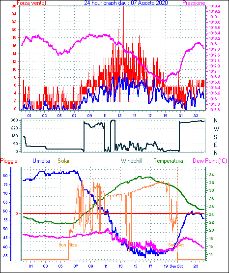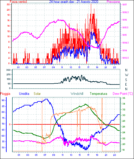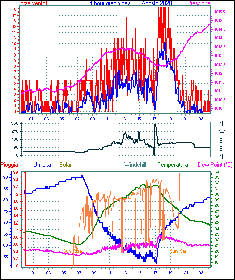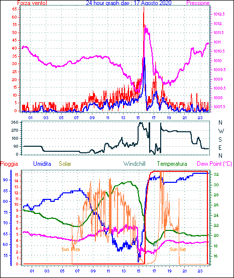 Il massimo windspeed = 44.4 kmh from 293°(WNW) giorno 17 tempo 15:42