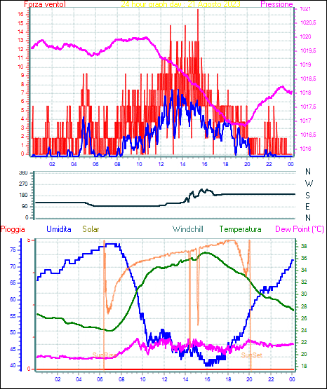 Maximum dewpoint = 21.7°C giorno 02 tempo 20:04