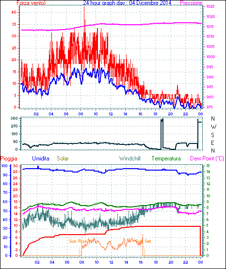 Il massimo windspeed = 25.9 kmh from 068°(ENE) giorno 04 tempo 10:40