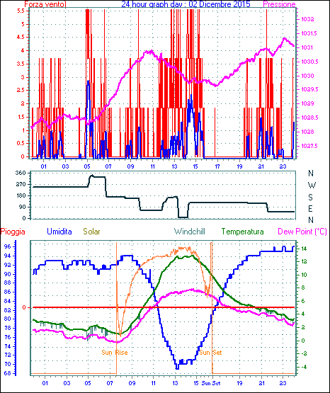 Minimum dewpoint = -1.5°C giorno 01 tempo 5:29