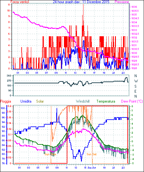 Il massimo windspeed = 11.1 kmh from 135°( SE) giorno 30 tempo 13:14