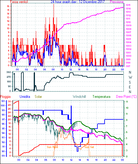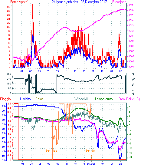 Il massimo windspeed = 24.1 kmh from 068°(ENE) giorno 16 tempo 01:03