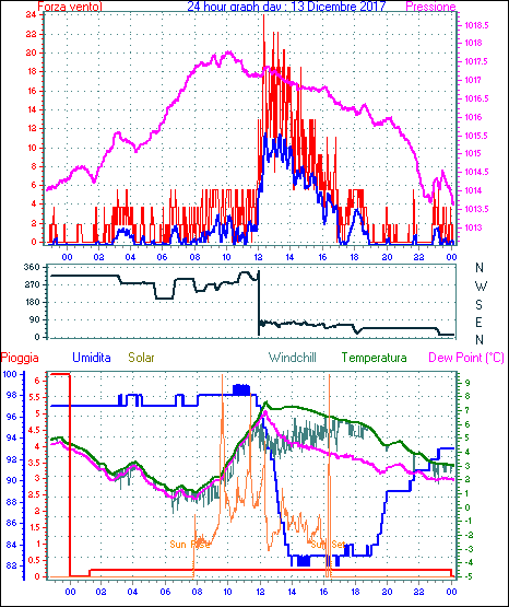 Velocità massima di raffica = 18.5 km/h da 045°( NE) giorno 01 tempo 13:21