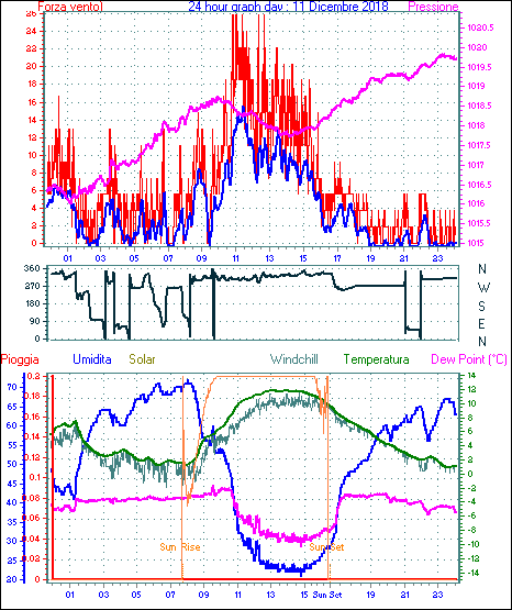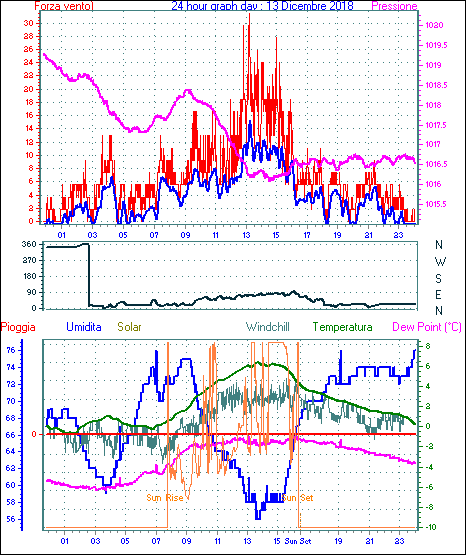 Il massimo windspeed = 81.4 kmh from 315°( NW) giorno 27 tempo 03:06