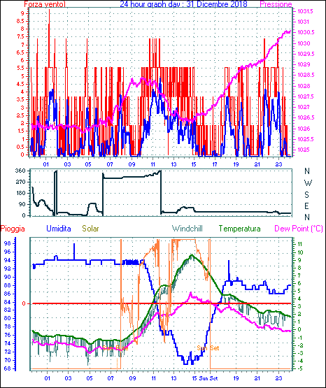 Pressione massima = 1030.6 hPa giorno 31 tempo 23:40