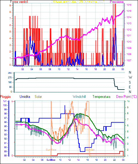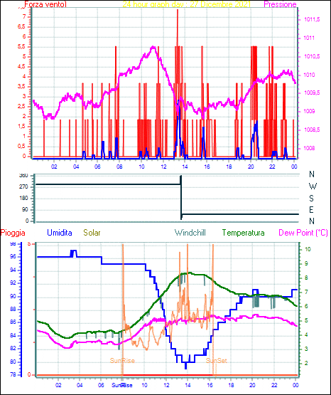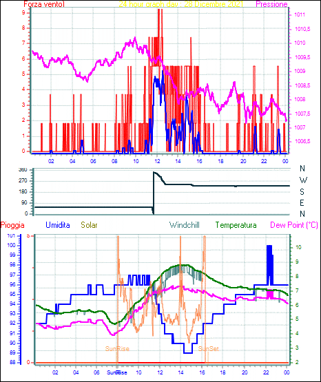 Il massimo windspeed = 9.3 kmh from 245°(WSW) giorno 30 tempo 11:33
