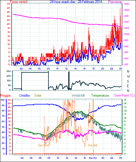 Il massimo windspeed = 18.5 km/h giorno 28 tempo 22:36